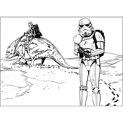 Überhaupt sind alle Bilder im Star Wars "Galaxy of Colouring"-Malbuch in schwarz-weiß. Merkwürdig. Vielleicht ist dem Imperium die Tinte ausgegangen? Wie dem auch sei: Es liegt an Dir, den Charakteren und Szenen aus Star Wars, die Dich auf den 112 Seiten erwarten, mit Buntstiften, Filzstiften oder dem Pinsel wieder Leben einzuhauchen. Wie soll man denn sonst die Jedi und Sith auf Distanz auseinanderhalten?