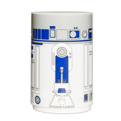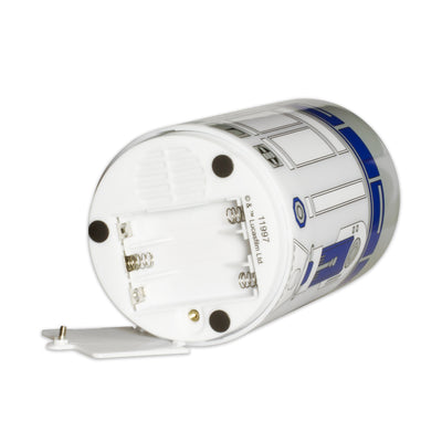 Mit der Star Wars R2-D2-Mini-Lampe kannst Du Deinen Traum wahr werden lassen! Dein ganz persönlicher Assistent lässt sich mit einem sanften Druck auf die Oberseite einschalten, was ihm auch sein charakteristisches Fiepen und Pfeifen entlockt. Ein weiterer Druck schaltet den Mini-R2-D2 wieder aus. Bevor Dir aber ein Licht aufgehen kann, solltest Du den kleinen Droiden mit drei AAA-Batterien (nicht enthalten) füttern.
