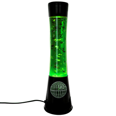 Obwohl es ein bisschen zu gefährlich wäre, voll funktionstüchtiges Kriegsgerät zu verschicken, kannst Du mit der Star Wars Rogue One Weltraumschlachten-Lampe die packende Action von der Leinwand direkt in Deine eigenen vier Wände holen. Ähnlich wie bei einer Lavalampe steigen im Glaskorpus sechs verschiedene Kampfflieger auf und ab und kämpfen um die Vorherrschaft. Auf Seiten der Rebellen stehen neben dem ikonischen X-Wing und dem Y-Wing noch der Neuzugang U-Wing. Das Imperium schickt TIE Striker, TIE Fighter und das persönliche Shuttle des Bösewichts Krennic ins Rennen. Neben der ganzen Action, die sich im Inneren der grünlich leuchtenden Lampe abspielt, kann auch das Gehäuse mit Details aufwarten, die das Herz eines jeden Fans höher schlagen lassen: Auf der einen Seite des Sockels befindet sich eine Abbildung des Todessterns, die andere Seite ziert das Emblem der Death Trooper, der Spezialeinheiten des Todessterns.