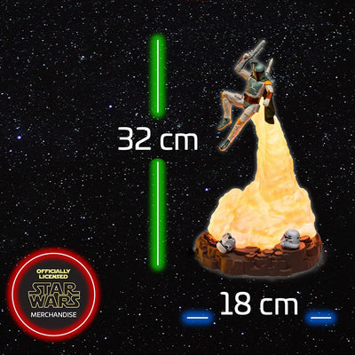 • Lampe, die den Kopfgeldjäger Boba Fett aus “Star Wars” beim Abheben mit seinem Jetpack zeigt