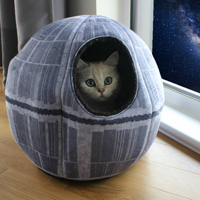 In dieser flauschigen Nachbildung der planetenzerstörenden Raumstation finden Katzen oder kleine Hunde Platz, um im Geheimen diabolische Pläne zu schmieden. Neben einem herausnehmbaren Kissen und wasserabweisendem Stoff können die Agenten des Imperiums sich zudem über eine rutschfeste Unterseite freuen. Ob der riesige Laser ebenfalls eingebaut ist, können wir aber leider nicht sagen...