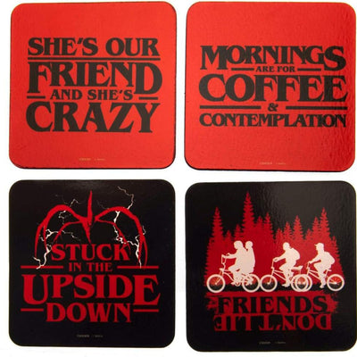 • 4 Untersetzer mit Motiven und Zitaten aus der Netflix-Serie „Stranger Things“