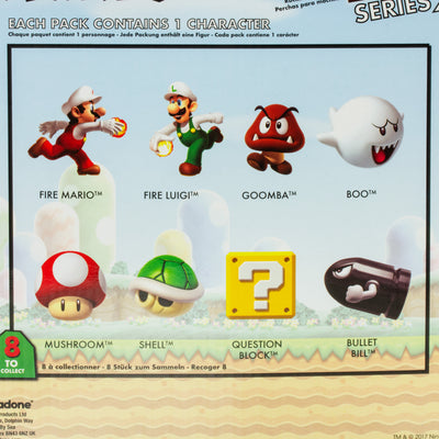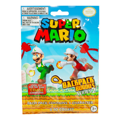 Diese Rucksackanhänger sind Charakteren und Gegenständen aus den "Super Mario"-Spielen nachempfunden und lassen sich mit dem enthaltenen Clip an Rucksäcken, Jacken und anderen Dingen befestigen. Jede Packung enthält einen der folgenden acht Anhänger: Fire Mario, Fire Luigi, Goomba, Boo, Pilz, Schildkrötenpanzer, Fragezeichen-Block oder Bullet Bill.
