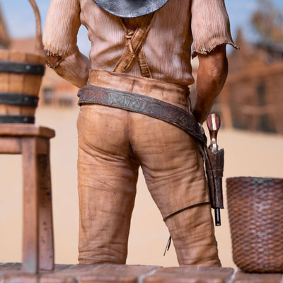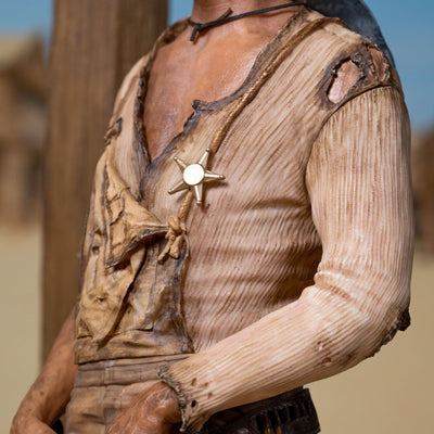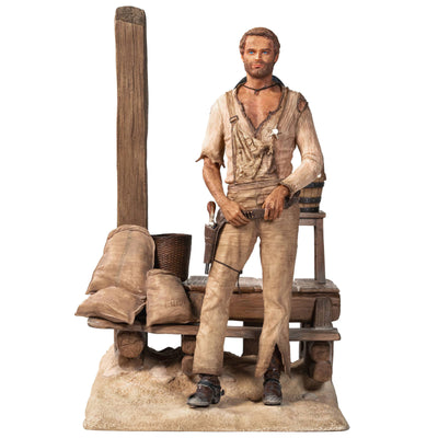Für Fans des verschmitzten Haudegens Terence Hill gibt es jetzt eine besondere Überraschung: Von der offiziell lizenzierten Terence Hill Limited Edition Sammelfigur gibt es nur 500 Stück und das aus gutem Grund. Denn die extrem detaillierte Figur aus Kunstharz ist beinahe fotorealistisch: Vom Stoff von Hills versengtem Hemd, über die Venen auf seinem braungebrannten Arm bis hin zu den Details des Pistolenhalfters – alles ist bis ins kleinste Detail dem Original nachempfunden. Ganz zu schweigen von der beeindruckenden Größe der Figur, denn sie misst etwa 36 cm. Der blauäugige Troublemaker befindet sich auf einer ebenfalls sehr detaillierten Western-Diorama-Base, die für festen Stand und den passenden Hintergrund sorgt.