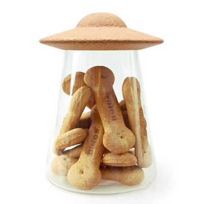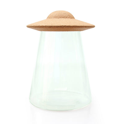 • Glas mit Korkdeckel in Form eines UFOs mit Lichtstrahl