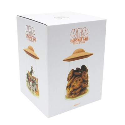 Wenn du regelmäßig gefragt wirst, wohin denn schon wieder die ganzen Kekse verschwunden sind, kannst du ab sofort ganz einfach behaupten: von Aliens entführt! Als Beweis dient die UFO Keksdose, die deutlich zeigt, dass sämtliche Süßigkeiten von der fliegenden Untertasse weggebeamt wurden.