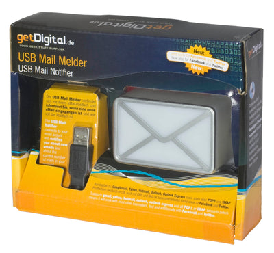 Denn ohne dass Du Dich immer wieder in Dein Mailprogramm einloggen musst, gibt Dir der USB Mail Melder Bescheid, wenn Du eine neue Nachricht erhalten hast. Dazu musst Du nur die dazugehörige Software herunterladen und installieren und die Daten Deines Mail-Accounts dort eingeben. Der USB Mail Melder arbeitet dann im Hintergrund, sodass Du Deinen PC ganz normal weiter benutzen kannst. In der Zwischenzeit wird der Status Deines Postfaches durch farbiges Leuchten der kleinen Box angezeigt, die Du - per USB angeschlossen - einfach auf Deinen Schreibtisch stellen kannst.