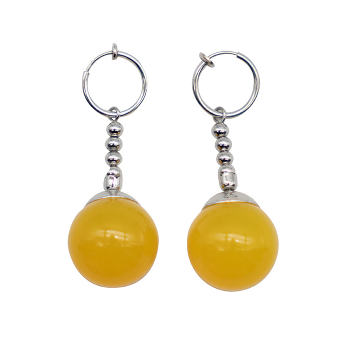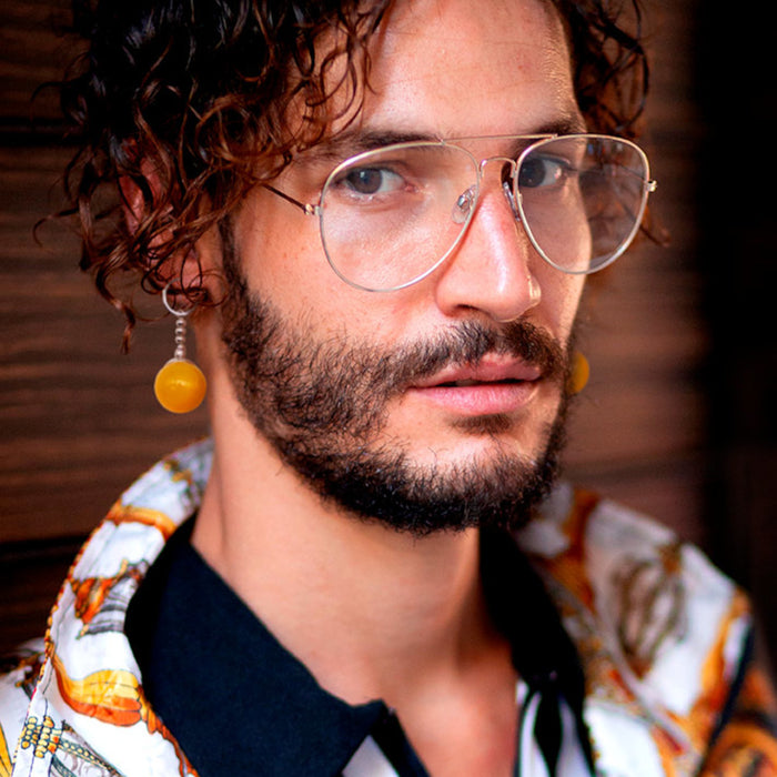 Für Unwissende sehen diese Ohrringe vielleicht einfach nur hübsch aus. Das sind sie auch mit den silbernen Ketten, an denen leuchtend orange Kugeln baumeln, die ein bisschen aussehen wie die Sonne.