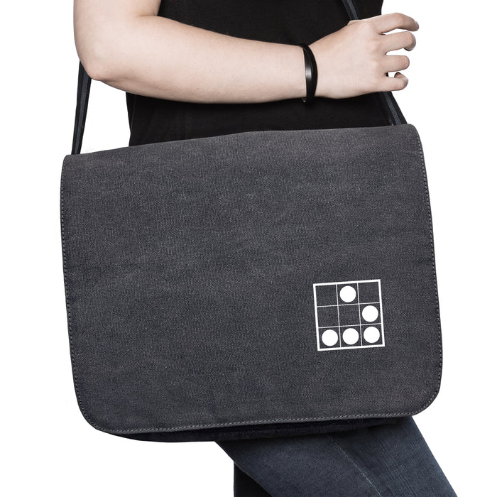 5 Fächer: Hauptfach mit Reißverschluss und innenliegender kleinen Innentasche mit zusätzlichem Reißverschluss, Vorfach mit Reißverschluss und zwei Einschubtaschen auf der Rückseite. Weitere Features: Deckel mit Klettverschluss und verstellbarer Schultergurt. Farbe Schwarz/Anthrazit. Abmessungen: ca. 35 x 29 x 6 cm (z.B. für Laptop bis 15.6" o. Leitz-A4-Ordner)