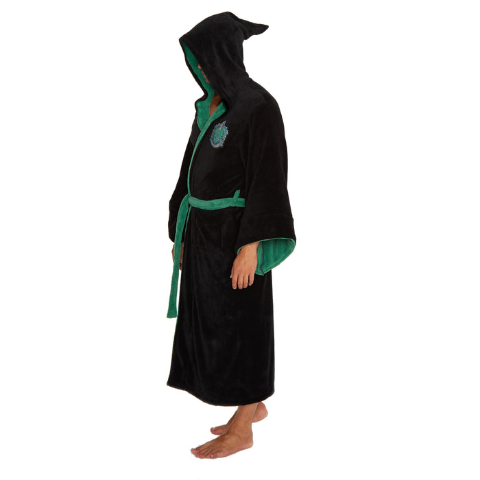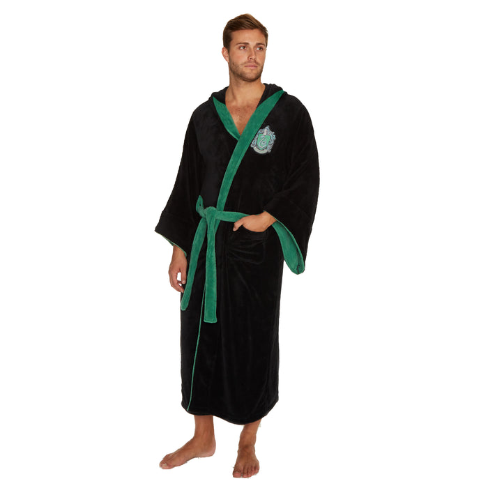 Diese flauschig weichen Bademäntel wurden in der Winkelgasse bei Madam Malkins von Hand hergestellt und werden auch Dich wohlig warm halten. Die Bademäntel der Häuser Gryffindor und Slytherin verfügen über eine spitz zulaufende Kapuze, einen Gürtel und einen Aufnäher, der je nach Variante das Wappen von Gryffindor (rot) oder Slytherin (grün) zeigt. Die Saumverzierungen und der Gürtel sind ebenfalls in den Farben des jeweiligen Hauses gehalten. Die Hogwarts-Bademäntel haben keine Kapuzen und sind mit dem Hogwarts-Wappen verziert.