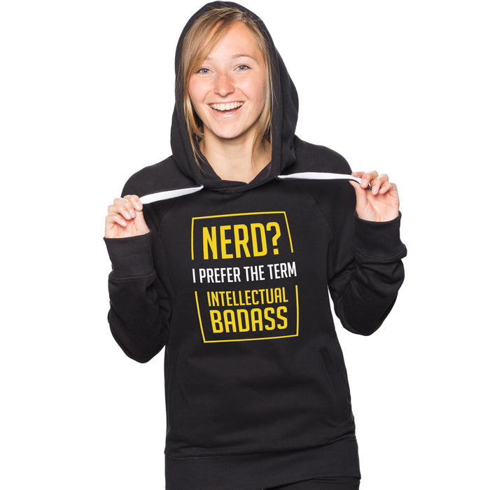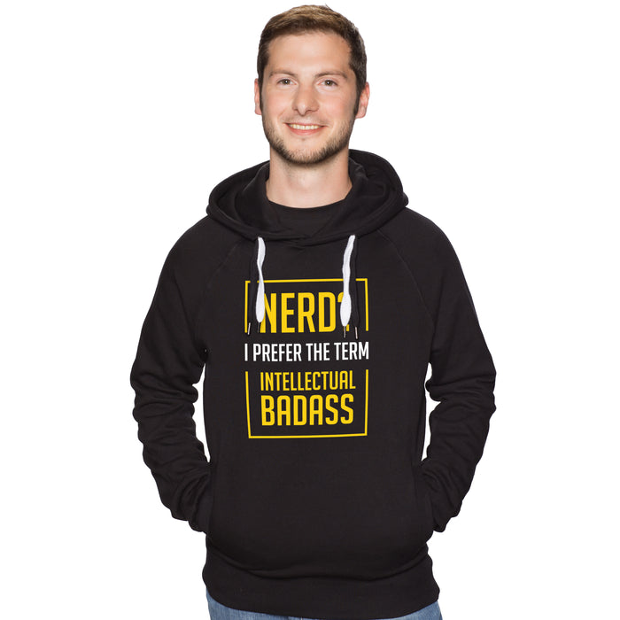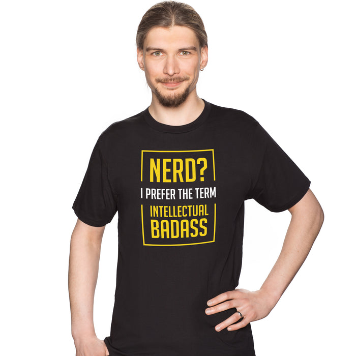 Das "Intellectual Badass"-Shirt bietet einen Ausweg aus diesem Dilemma: Es deutet den Begriff "Nerd" einfach um! Von jetzt an kannst Du auf die Frage "[i]Was ist ein Nerd?[/i]" einfach antworten: "[i]Ein intellektueller Badass![/i]" (Englisch für "harter Typ"). Manchmal sind wenige Worte halt einfach mehr. :)