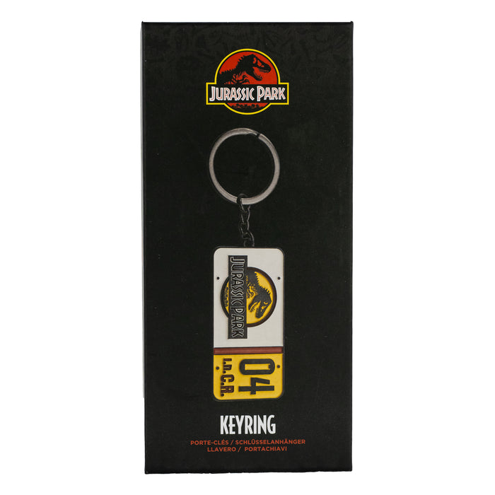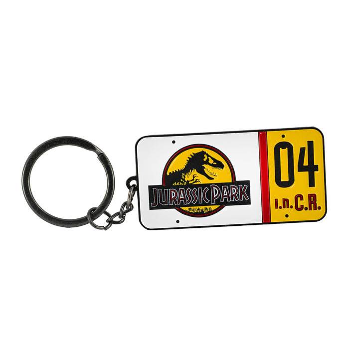• Offiziell lizenzierter Schlüsselanhänger im Design des Jurassic Park Jeep-Kennzeichens 04