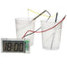 Inhalt: Digitaluhr, Anschlussdrähte, Klebestreifen, 2 Becher, Kupfer- und Zinkstreifen, englische Anleitung