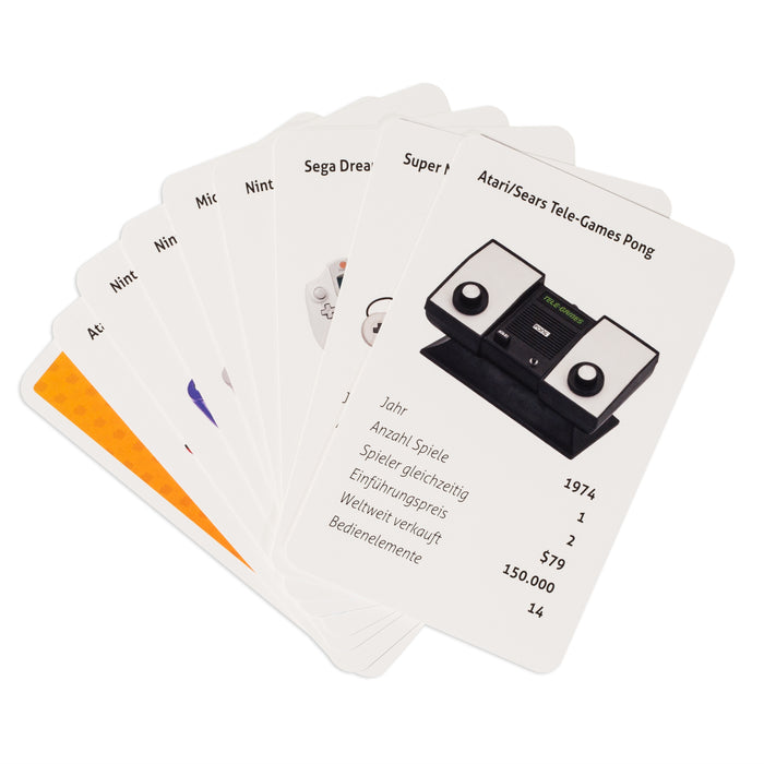 Das Spielprinzip folgt dem altbekannten Supertrumpf: Eine Kategorie wird ausgewählt und wer den höchsten Wert hat, gewinnt die Runde. Kategorien sind z.B. die Zahl der Spieler, der Einführungspreis, die Zahl weltweit verkaufter Exemplare und die Bedienelemente.