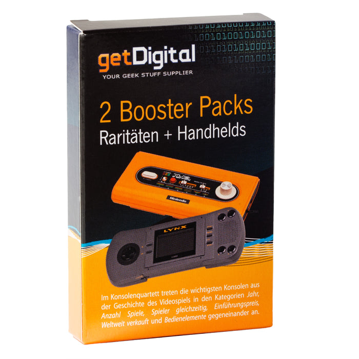 Man kann sich ja viel darüber streiten, welche Konsole die beste ist, aber leider kann man sie nicht gegeneinander antreten lassen. Mit den Booster Packs Raritäten und Handhelds mit insgesamt 32 Karten in einem Set, bietet sich dir nun eine Möglichkeit! Darunter sind Perlen wie die Nintendo Color TV Game (1977) oder, selbstverständlich, der Nintendo Game Boy (1989). Letzterer schlägt übrigens seinen Vorgänger mit 812 zu 15 Spielen. ;)