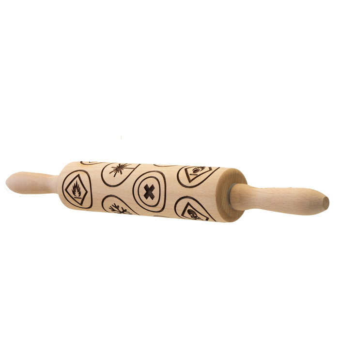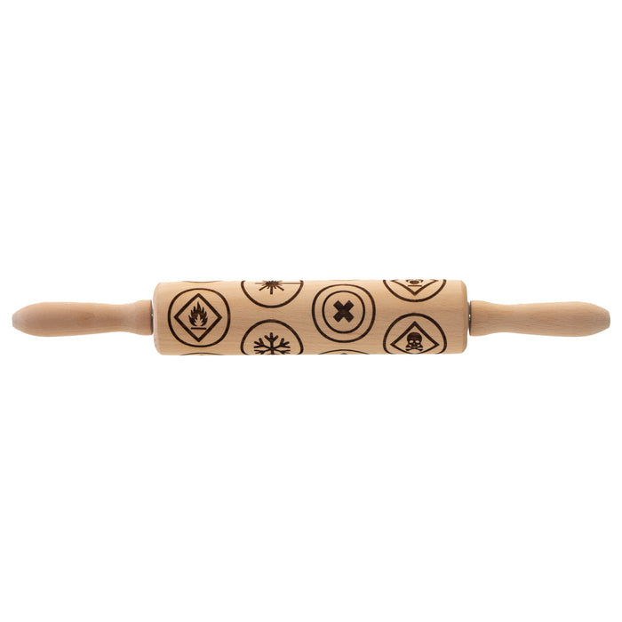 Beschreibung Motiv-Teigrolle mit chemischen Warnsymbolen