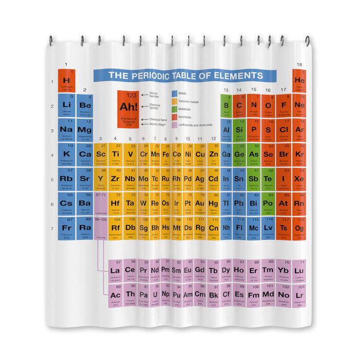 Doch das wird sich ab jetzt ändern! Der Periodensystem Duschvorhang lädt dazu ein, während der allmorgendlichen Hygienerituale für Chemie zu lernen - direkt in der Badewanne mit etwas H2O! Falls Du Dich in der Chemie schon richtig gut auskennst und vielleicht sogar Nachhilfe gibst oder dozierst, wird Dein Badezimmer mit diesem Duschvorhang ein toller Anschauungsort - warum nicht mal den Unterricht neben dem Waschbecken stattfinden lassen? Das passende PES-Badehandtuch haben wir natürlich auch im Angebot.:)