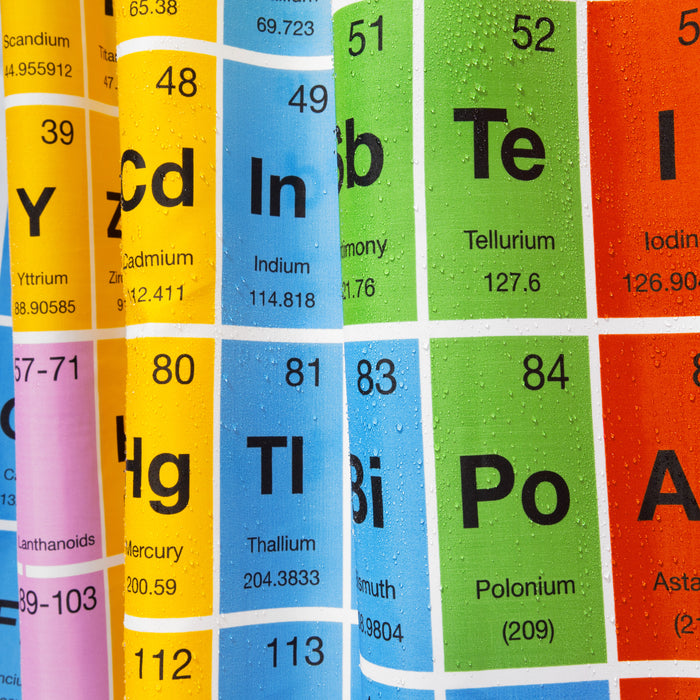 • Duschvorhang mit aufgedrucktem Periodensystem der Elemente