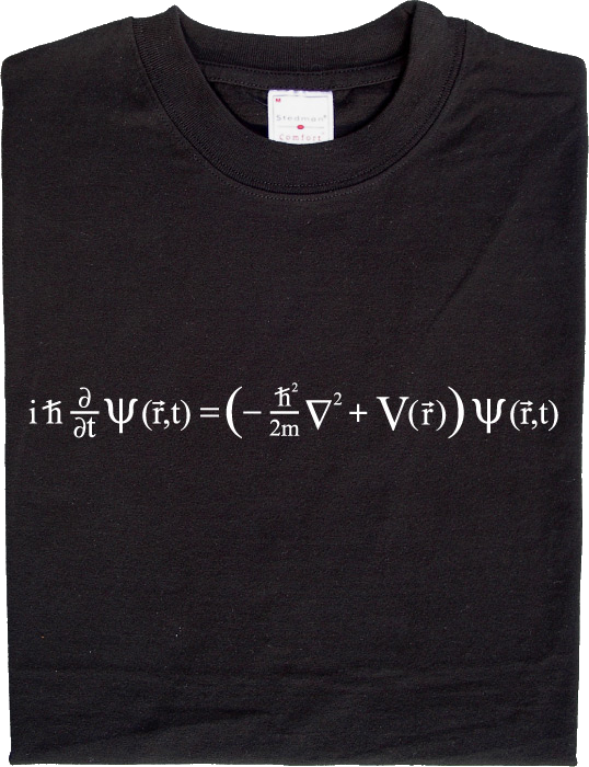 Die zeitabhängige Schrödingergleichung beschreibt den Zustand eines Quantensystems. Und natürlich passt diese Gleichung auch perfekt auf ein T-Shirt :)