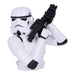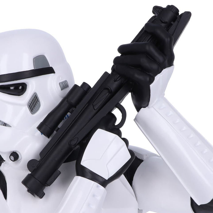 Die Stormtrooper Büste sieht aus wie die obere Hälfte eines Sturmtrupplers aus dem Star Wars-Franchise. Die komplex geformte weiße Rüstung, der unverkennbare Helm und das Blaster-Gewehr basieren natürlich alle auf den Originalen aus den Filmen und sind sorgfältig von Hand bemalt. Die Büste des schießwütigen Imperiumssoldaten misst gut 30 cm und ist damit eine eindrucksvolle Ergänzung für dein Sammlerregal (oder jeden anderen Ort in deinem nerdigen Zuhause). ;)