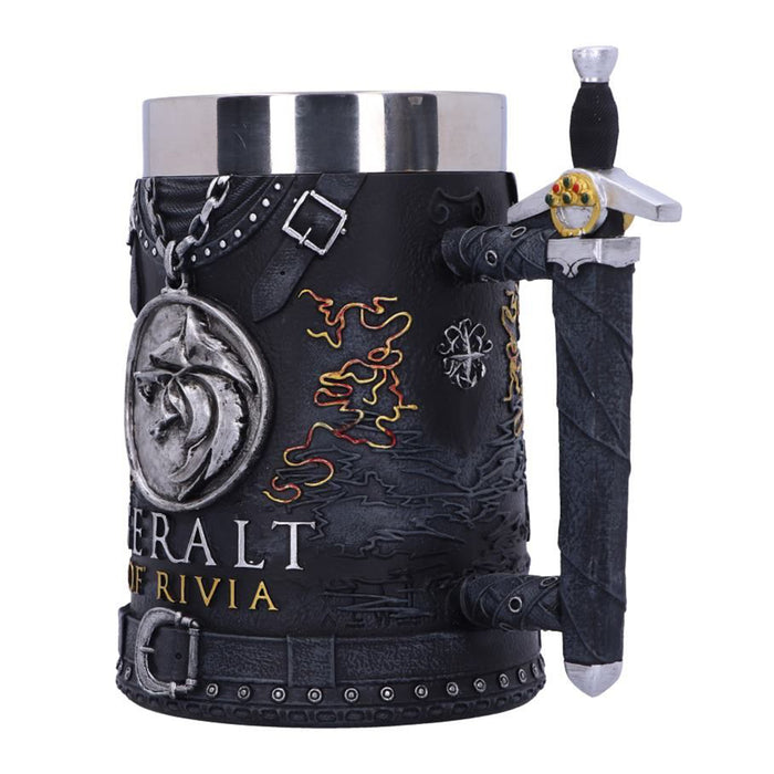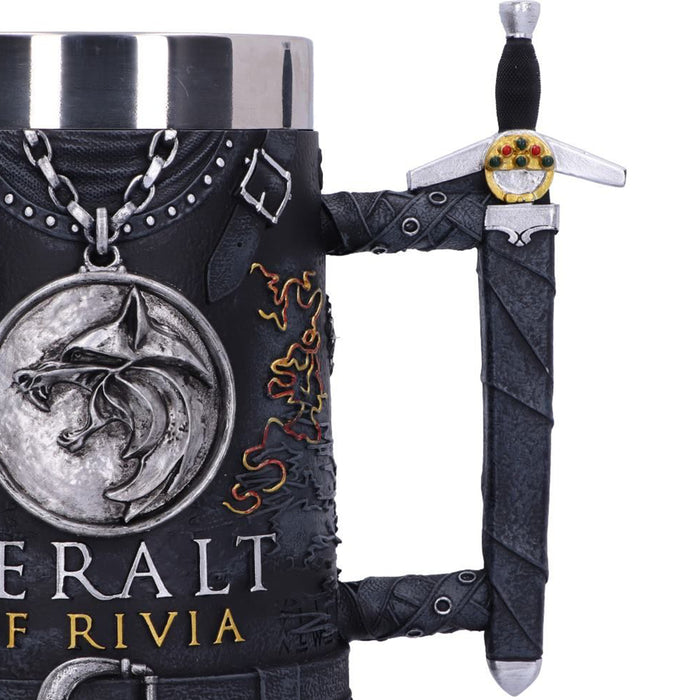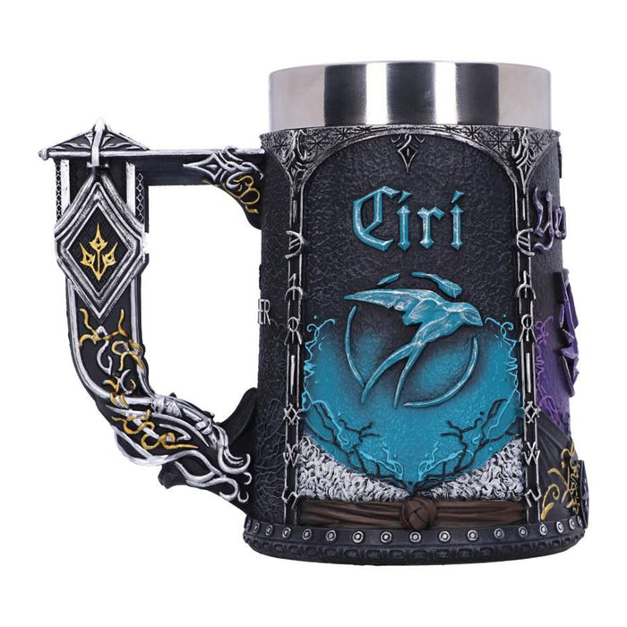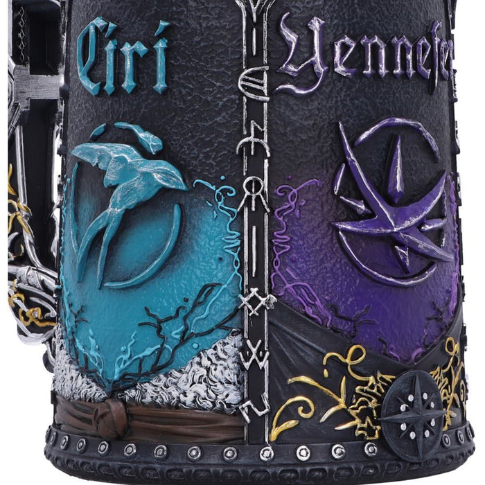 • Für alle, die sich unter diesen dreien nicht für einen Lieblingscharakter entscheiden können, gibt es außerdem einen Bierkrug, der Geralt, Ciri und Yennefer gemeinsam gewidmet ist. Auf ihm sind die Elemente der oben beschriebenen Gefäße vereint. Außerdem trägt er den Schriftzug „The Witcher“.