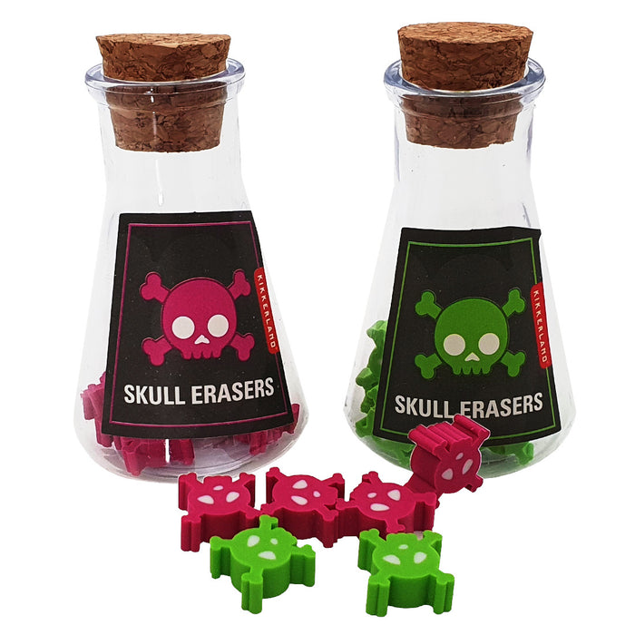 Totenkopf-Radiergummis in Erlenmeyer-Kolben